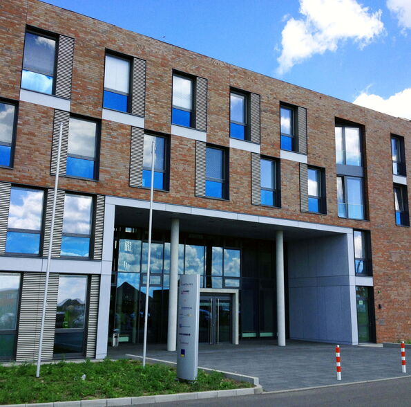 Die Gründung besteht aus Pfählen und einer tragenden bewehrten WU-Sohlplatte. Die UG-Stahlbetonaussenwände werden aus 3-fach-Elementwänden hergestellt. Als oberer Abschluss des 3. Obergeschosses ist eine Stahlbetondecke mit Dachdämmung und Dachabdichtung als Bitumenbahn bzw. Folienabdichtung (Warmdach) vorgesehen. Alle Dachdecken werden als liniengelagerte „Filigran“-Elementdecken projektiert: Über der im mittleren Gebäudeteil befindlichen Halle ragt die Dachkonstruktion erhöht über die übrige Dachkonstruktion als „Leuchtturm“ hervor. Dieser Teil besteht auch aus einer Filigran-Elementdecken mit Ortbetonergänzung, welche auf Stb.-Halbfertigteilen ruhen. Die Geschossdecken werden auch als liniengelagerte „Filigran“-Elementdecken ausgeführt. Die Aussteifung der einzelnen Gebäudeteile erfolgt grundsätzlich über die Stahlbetondeckenscheiben in die vorhandenen massiven Wandscheiben in allen Geschossen. Die Fassadenkonstruktionen bestehen aus vorgehängten Betonwerksteinplatten als äußere Wetterschale sowie Glasfassaden im Hallenbereichen als Pfosten-/Riegelkonstruktion.