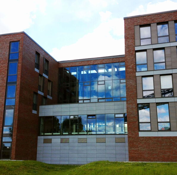 Der Neubau des Bürogebäudes am Hafen Brunsbüttel ist als kompakter viergeschossiger Baukörper mit hoher Energieeffizienz konzipiert. Der Bau möchte eine zeitlose Ausstrahlung vermitteln und verzichtet dabei bewusst auf modische Attitüden. Der klare geometrische Körper soll als Landmarke und Orientierungspunkt am landseitigen Eingang des Hafens stehen. Als steinerner Körper behauptet er sich gegen die technisch dominierte Hafenwelt aus Kränen, Containern und Pipelines und steht für Kontinuität und Wertigkeit.