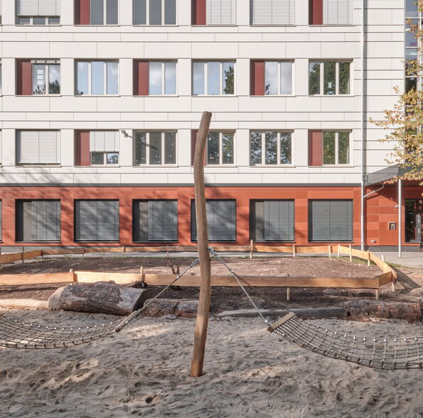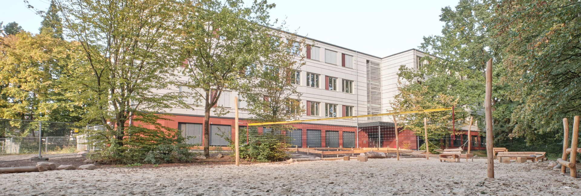 Die Hamburger Klassenhäuser werden mit vorgefertigten tragende Bauteile in Stahlbeton-, Holz- oder Holzhybridbauweise konzipiert. An diesem Standort wurde eine Stahlbetonkonstruktion aus vorgefertigten Elementen errichtet. Geschossdecken und Dach bestehen aus Spannbetonhohlplatten, während einzig die Sohle in Ortbeton ausgeführt ist.