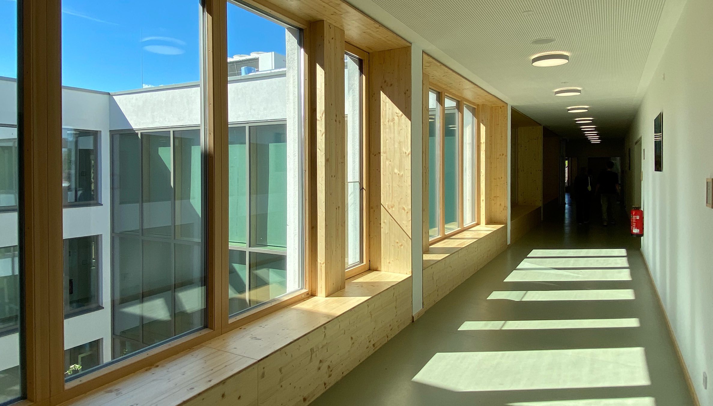 Zusätzlich wurde das freistehende Hortgebäude renoviert und die alte Sporthalle durch eine moderne Zwei-Feld-Halle mit gängigen Nebenräumen ersetzt.