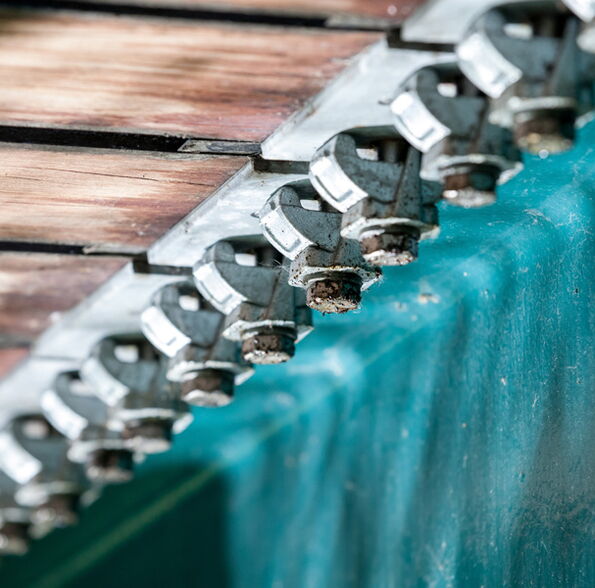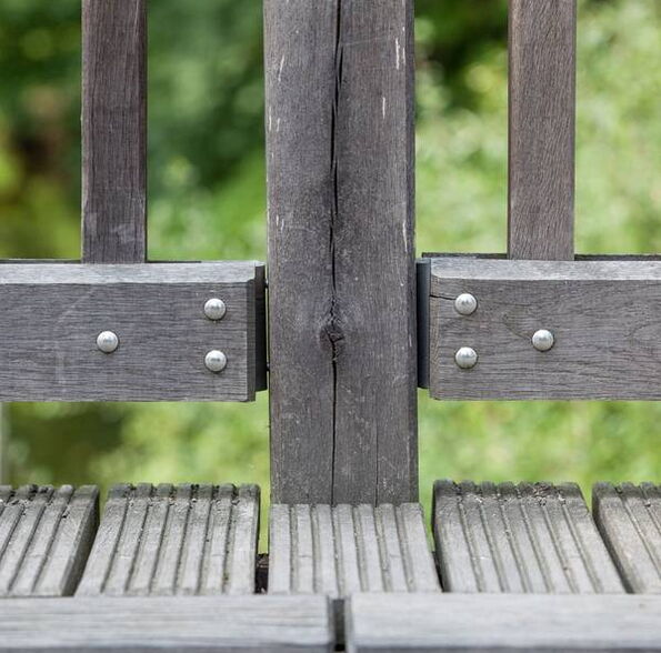 Das Haupttragsystem bilden 5 Stahlträger IPE 500 im Abstand von 94 cm. Als Fahrbahnkonstruktion dienen Eichenbohlen mit b/d= 18/22 cm, wobei 2 cm als Verschleißschicht eingerechnet wurden. Auf diese Bohlen wurden später diagonal verlegte Bohlen geschraubt!