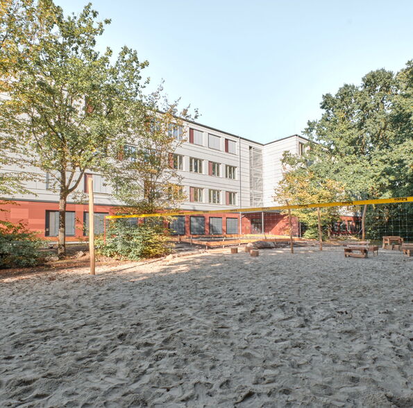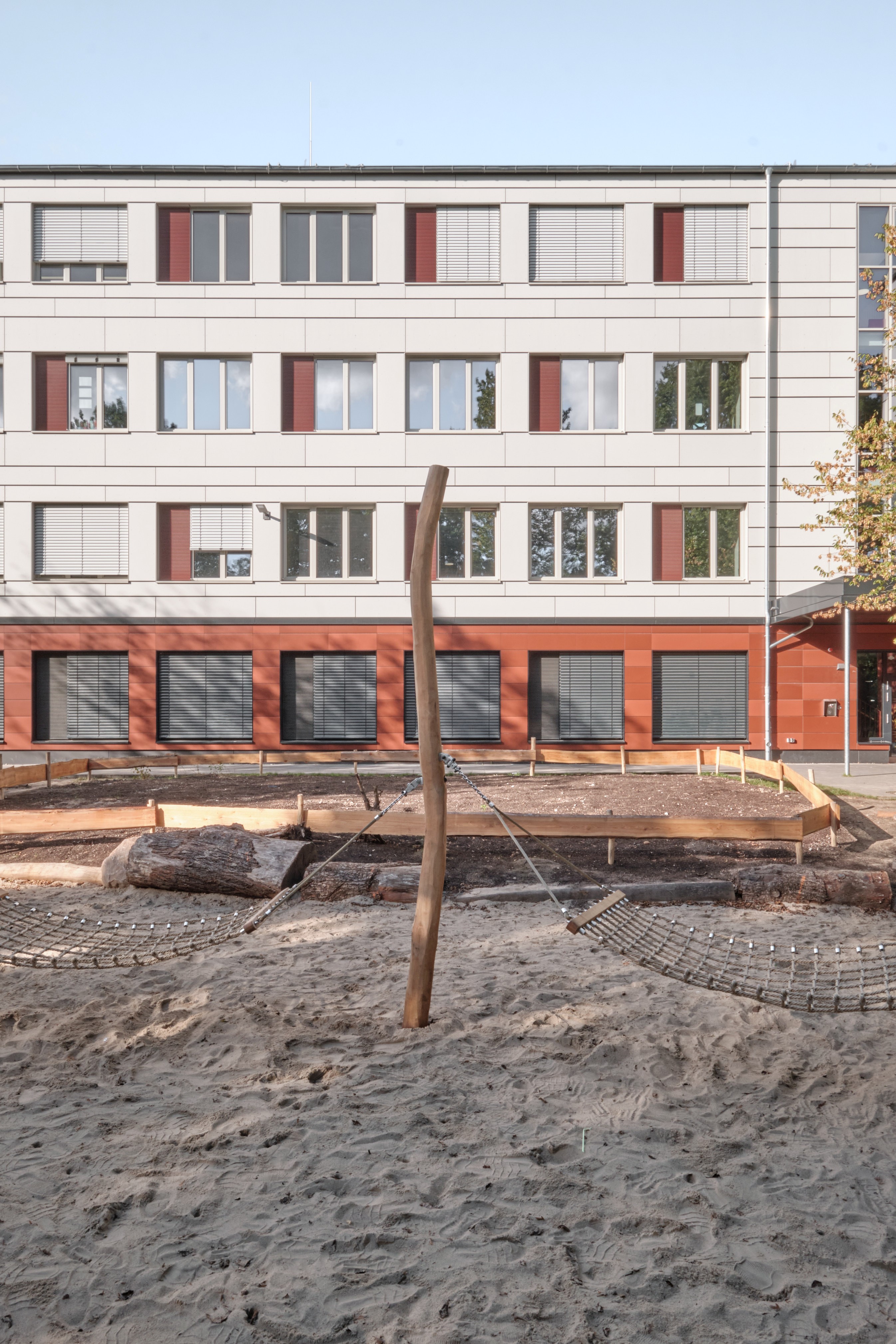 Die Hamburger Klassenhäuser werden mit vorgefertigten tragende Bauteile in Stahlbeton-, Holz- oder Holzhybridbauweise konzipiert. An diesem Standort wurde eine Stahlbetonkonstruktion aus vorgefertigten Elementen errichtet. Geschossdecken und Dach bestehen aus Spannbetonhohlplatten, während einzig die Sohle in Ortbeton ausgeführt ist.