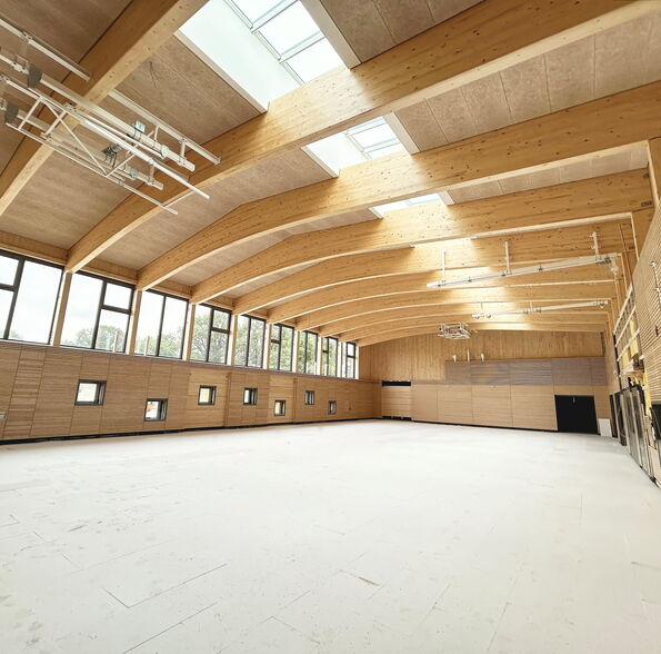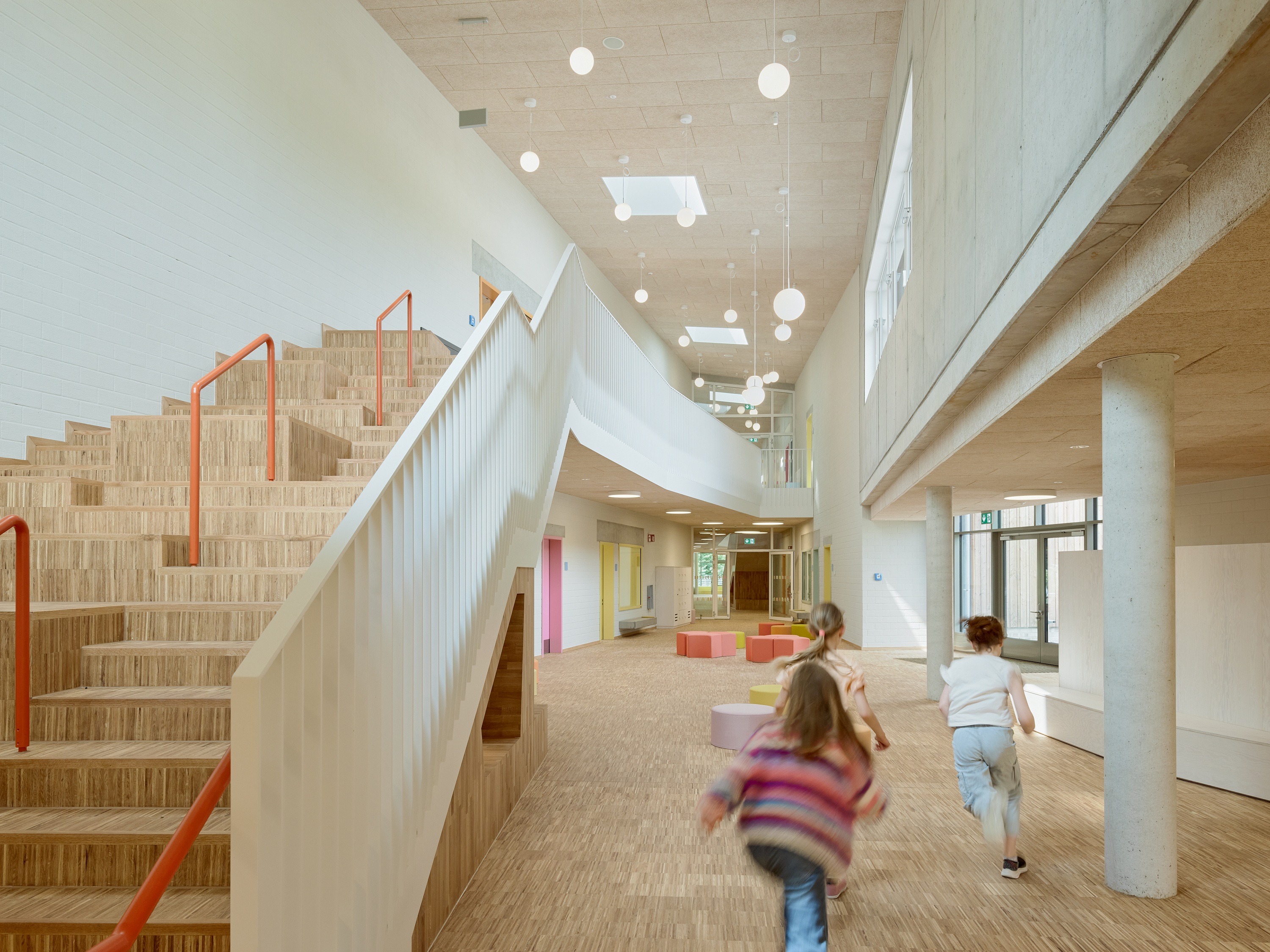 Die Grundschule Bünningstedt hat einen zweizügigen Neubau erhalten, der jahrgangsübergreifendes Lernen durch Lernhäuser, offene Lernflächen und Raum für soziale Interaktion ermöglicht. Statt klassischer Flure unterstützen flexible Lernumgebungen, sogenannte "Marktplätze" und "Lernhallen", das innovative hybride Lernkonzept und fördern kommunikatives und bewegungsorientiertes Lernen. Der Neubau gliedert sich in drei Bereiche, die zentral verbunden sind. Er besteht aus einem 2-geschossigen Hauptteil und zwei kompakten Lernhäusern für jüngere Jahrgänge. Ein offenes Foyer im Hauptteil bildet den Eingangsbereich. Das Gebäude wurde als klimafreundlicher und energieeffizienter Neubau konzipiert und entspricht dem Standard Effizienzgebäude 40. Auf dem Gelände wurde außerdem eine Sporthalle mit Sportlerheim und üblichen Nebenflächen errichtet.