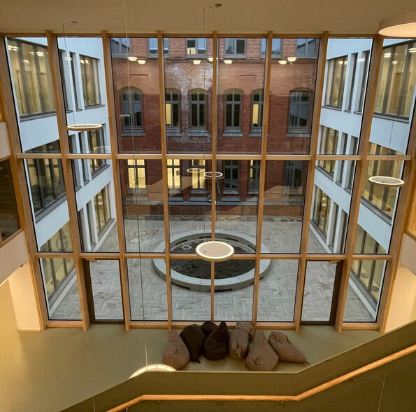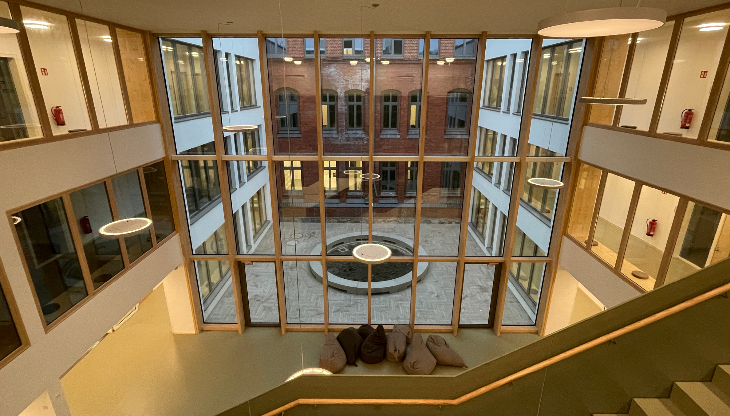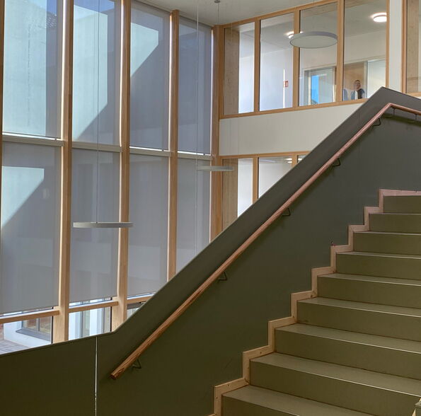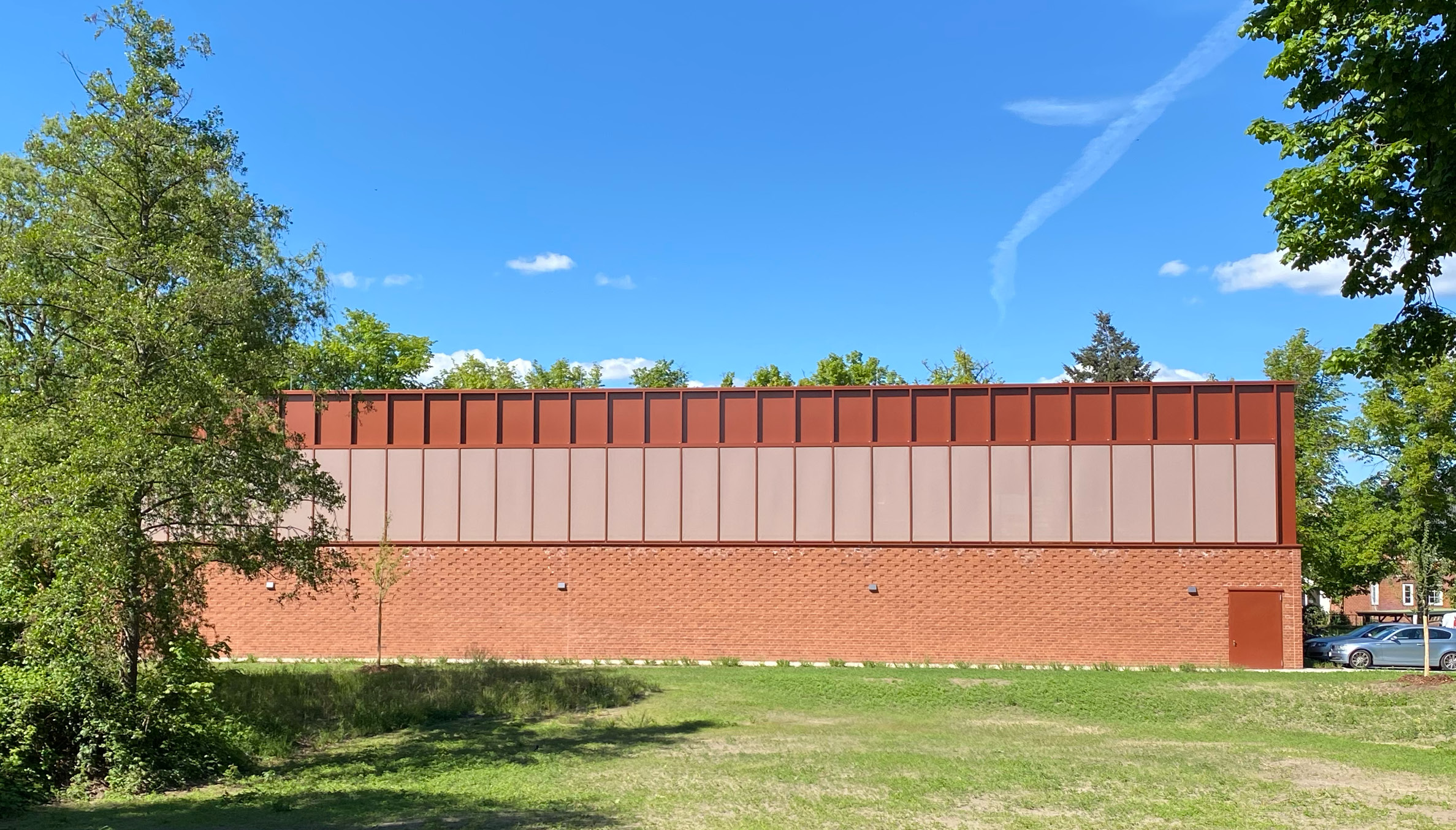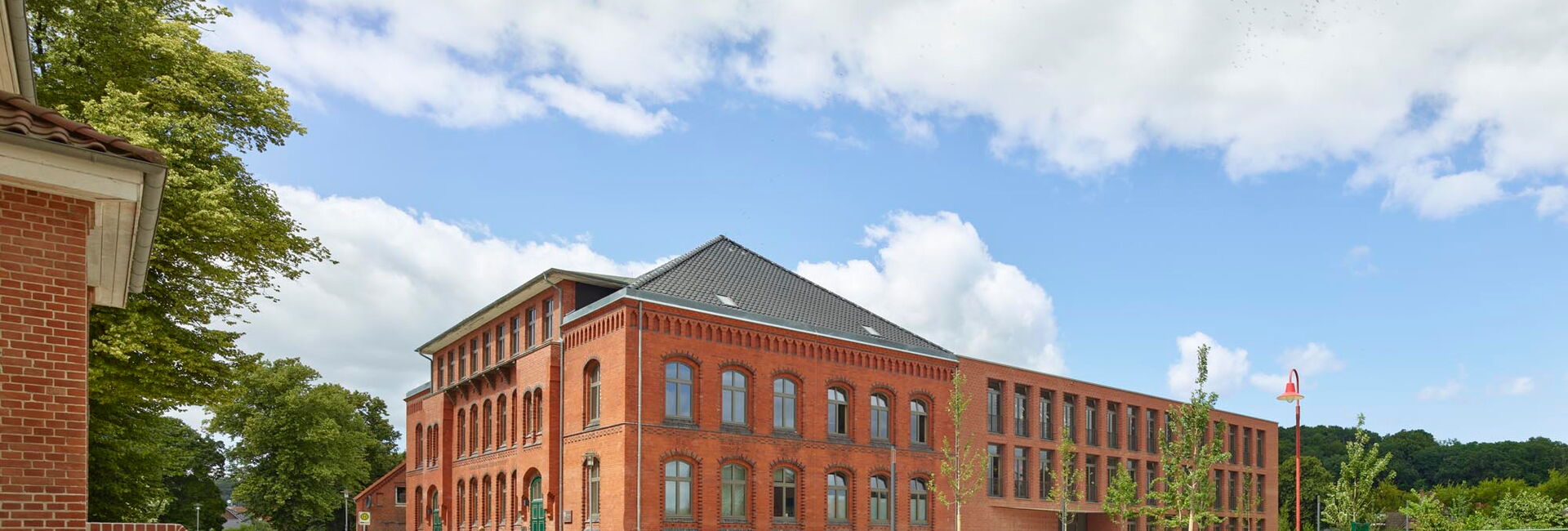 Zusätzlich wurde das freistehende Hortgebäude renoviert und die alte Sporthalle durch eine moderne Zwei-Feld-Halle mit gängigen Nebenräumen ersetzt.